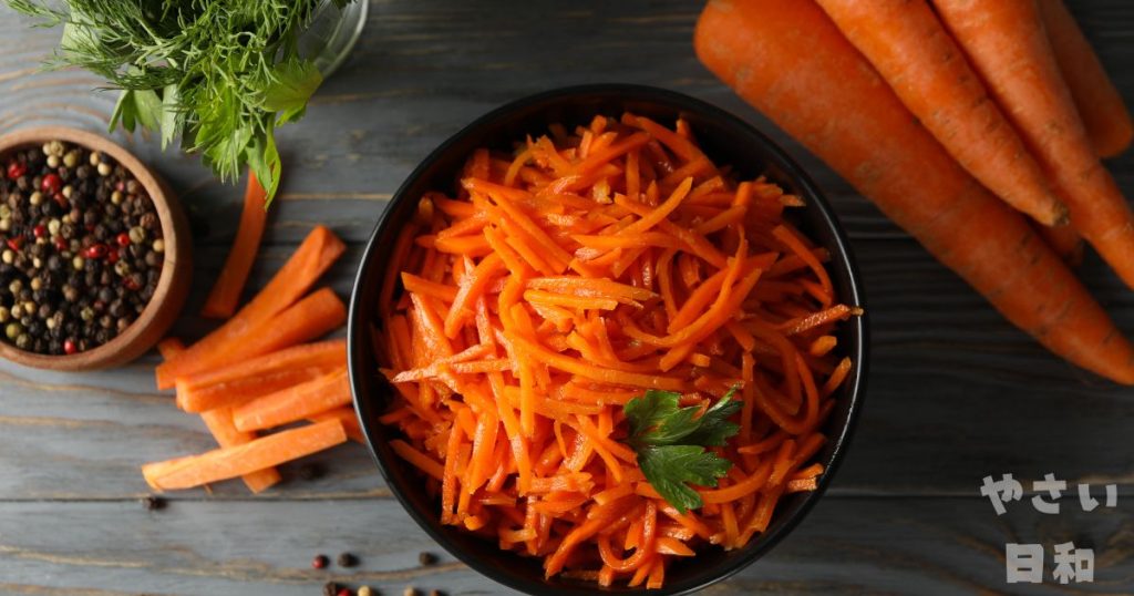 しなびてしまったにんじんは、冷水に30〜60分ほど浸すと張りが戻りやすくなります。