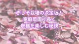 自家栽培ならではの新鮮な味わいを楽しみながら、家庭菜園の魅力をさらに広げていきましょう。