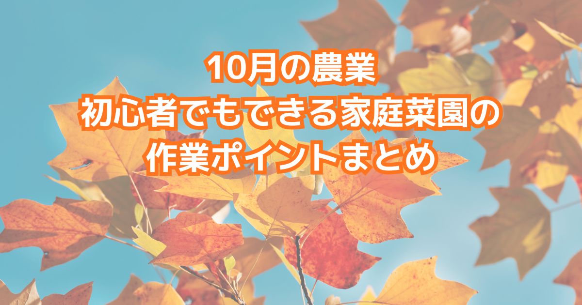 「家庭菜園を始めたいけれど、何から手をつけたらいいのか分からない」そんな声をよく耳にします。特に10月は夏の作物が終わり、次に何を育てようかと迷う方も多いでしょう。実はこの季節こそ、初心者が安心して挑戦できる絶好のタイミングなのです。この記事では、10月に取り組む家庭菜園の作業ポイントをやさしく整理し、すぐに実践できるヒントをご紹介します。